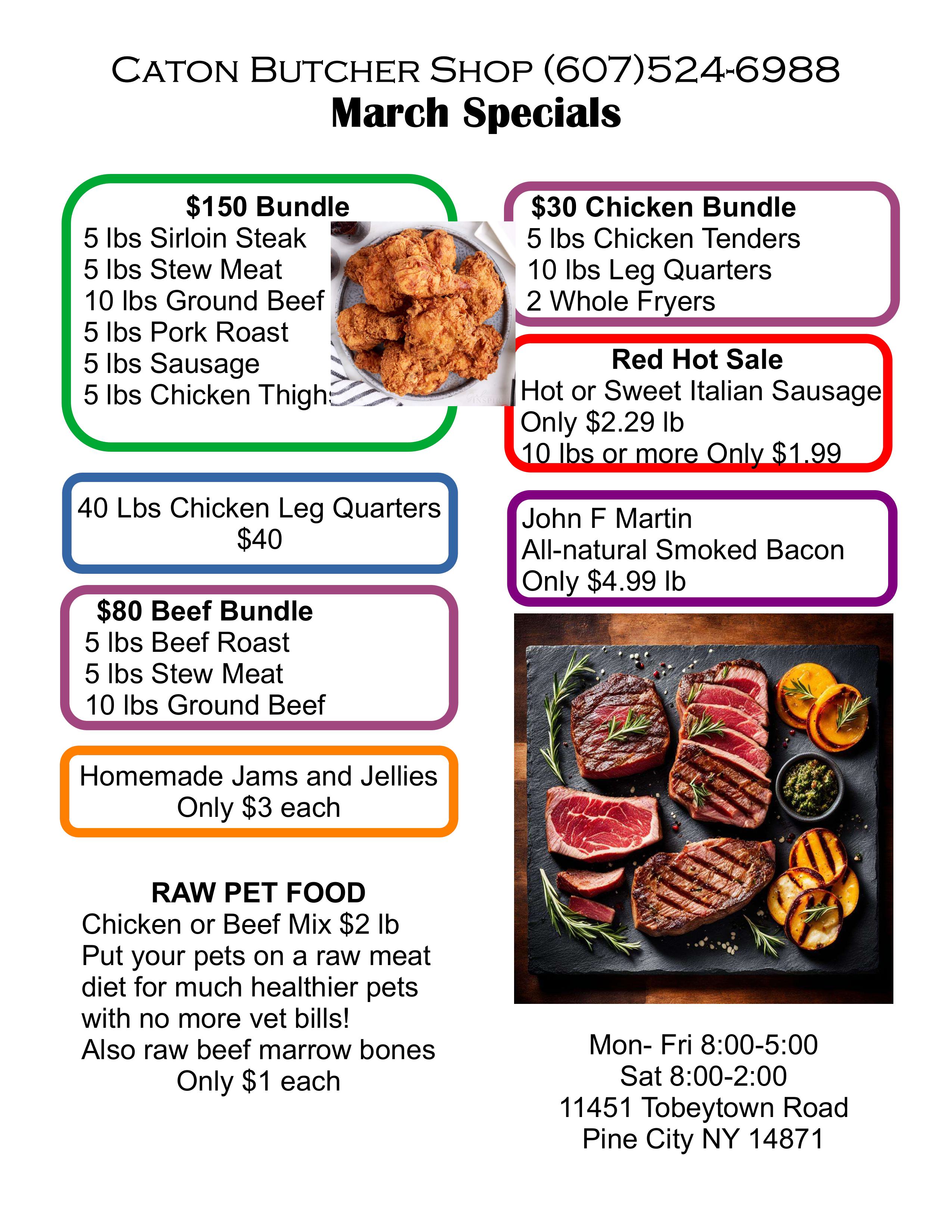 Includes steaks, roasts, backstraps, tenderloins, and burger